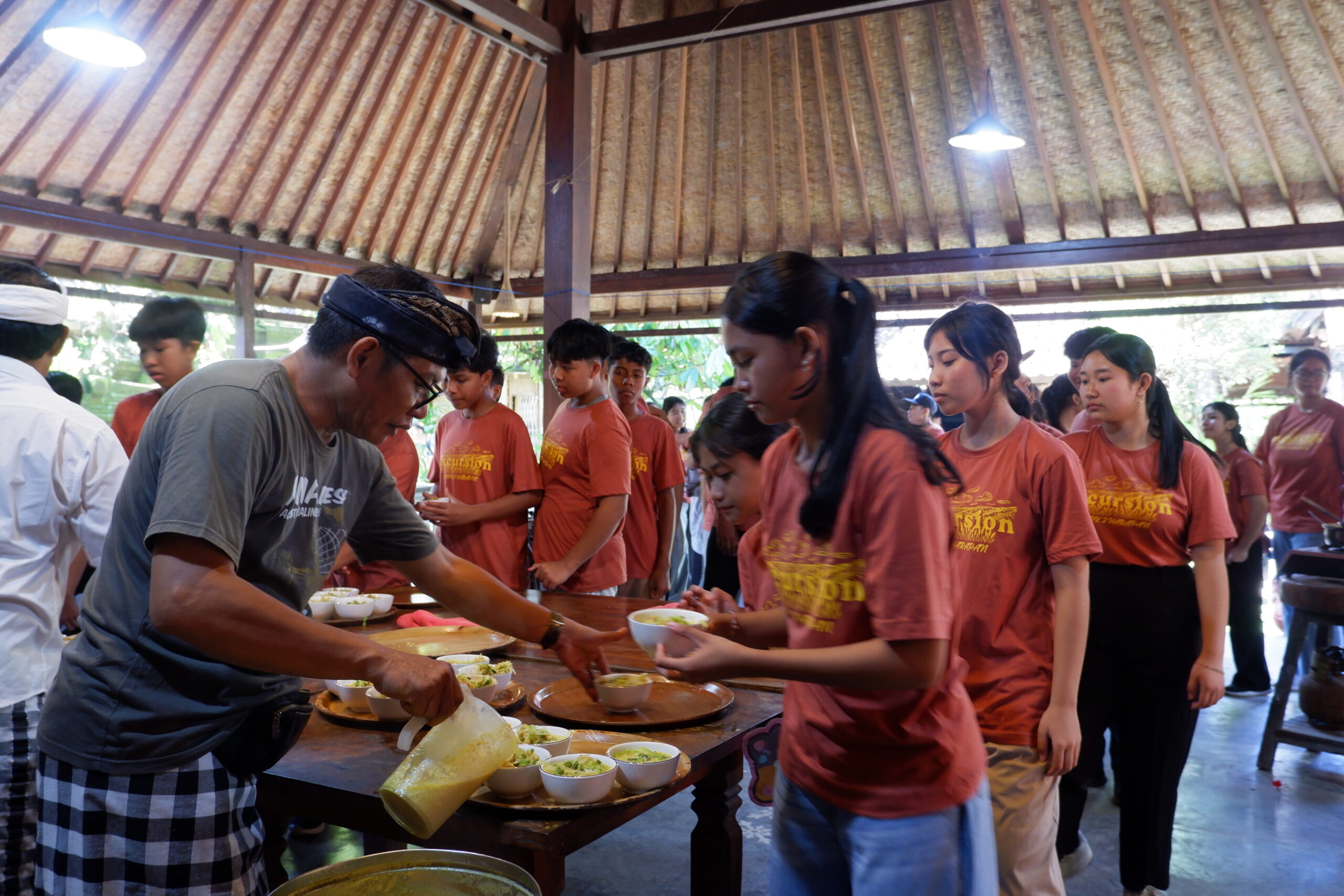 Keseruan hari itu sudah dimulai sejak pukul 06.00 WITA ketika seluruh peserta berkumpul di Puspem Badung untuk pengarahan sebelum berangkat. Setibanya di lokasi pada pukul 08.00 WITA, para siswa disambut dengan keasrian desa dan langsung diperkenalkan pada filosofi arsitektur rumah tradisional Bali yang sarat akan makna spiritual.