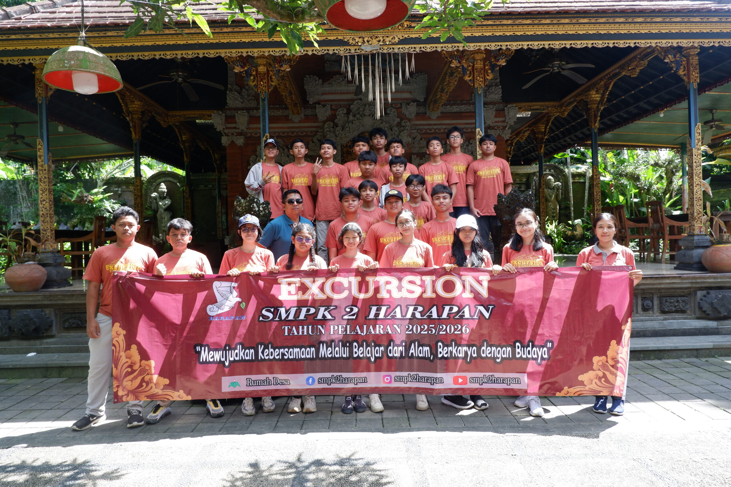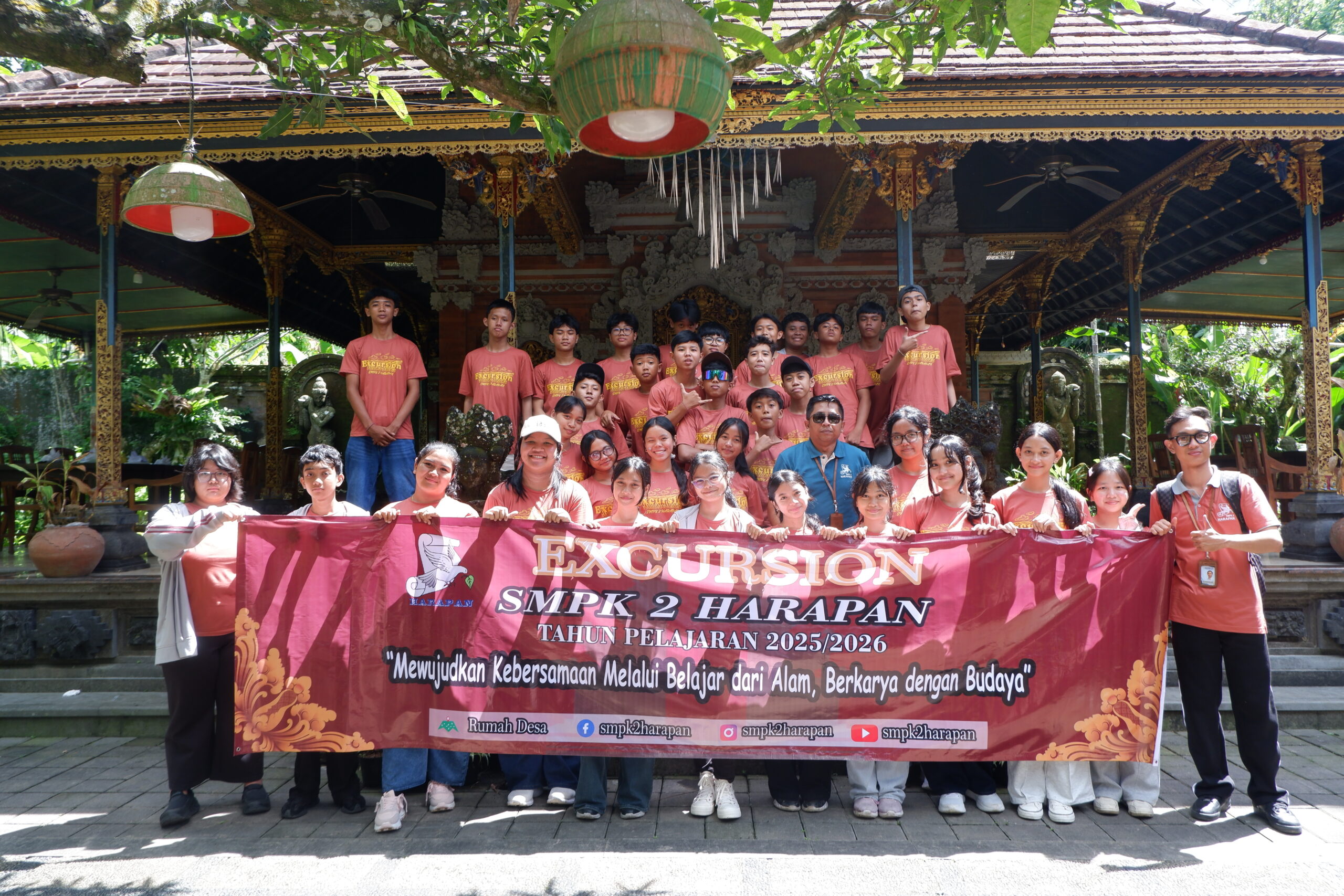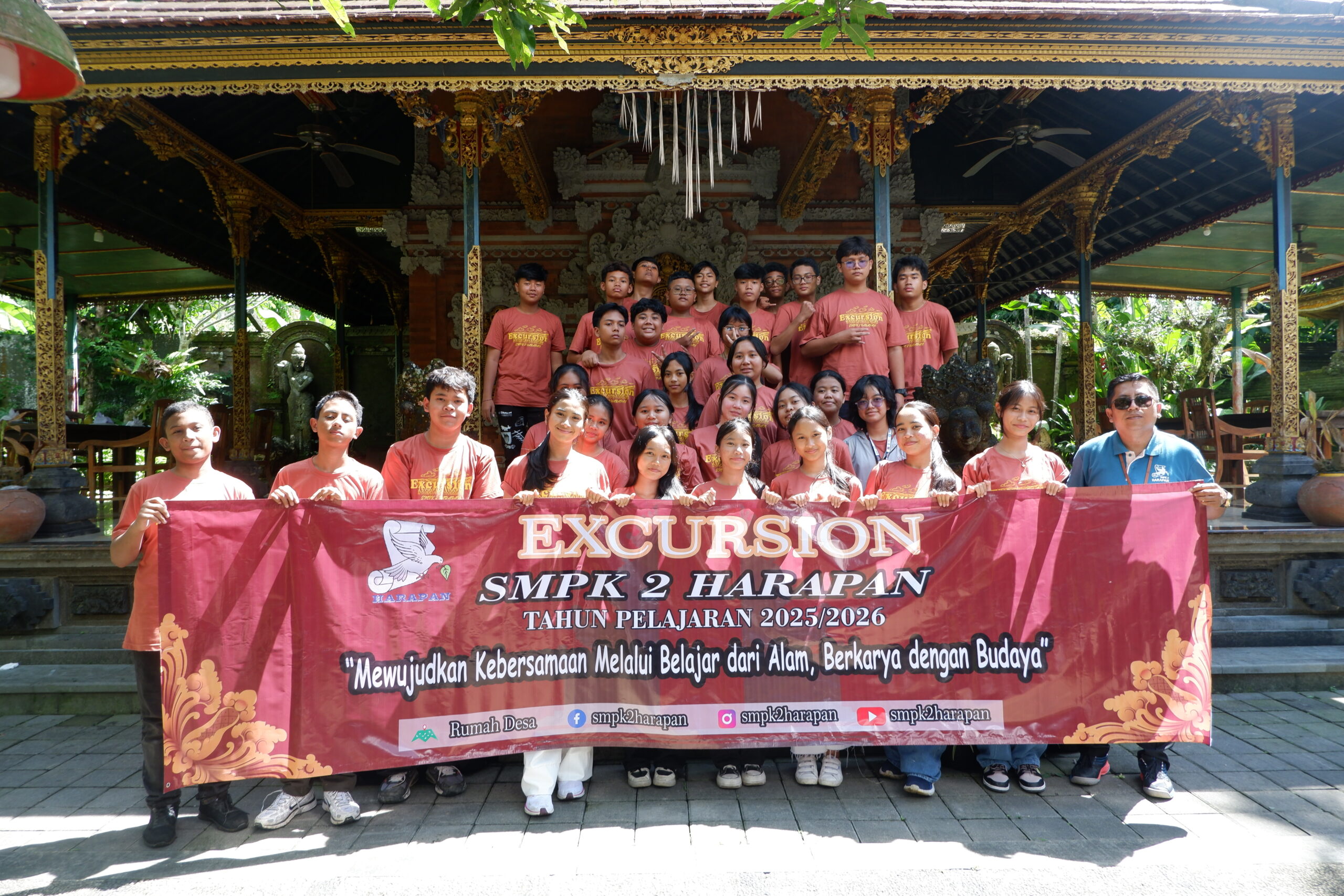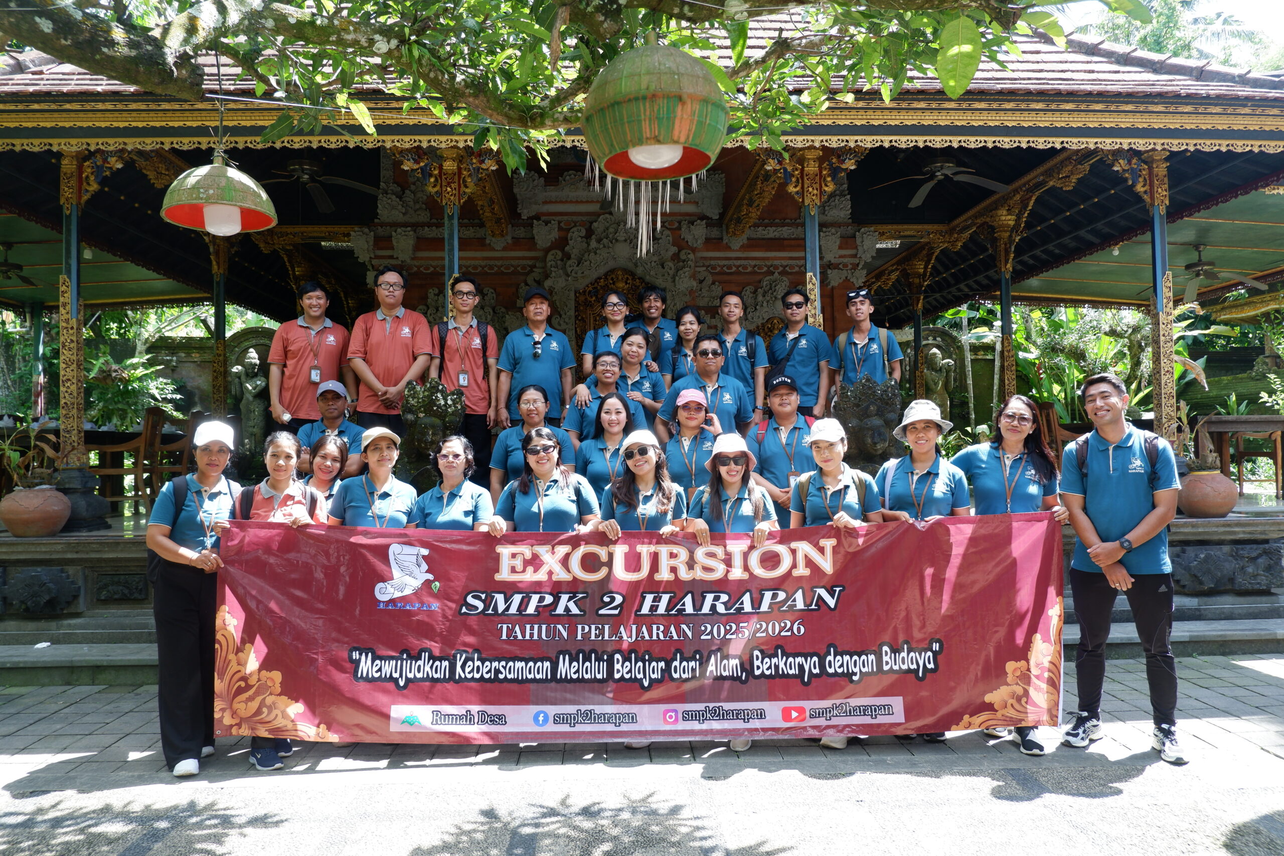 Tabanan, 11 April 2026 – Guna memberikan pengalaman belajar kontekstual dan interaksi langsung dengan lingkungan sekitar, SMPK 2 Harapan sukses menyelenggarakan kegiatan Excursion. Kegiatan edukatif ini dilaksanakan pada hari Jumat, 10 April 2026, bertempat di Desa Wisata Rumah Desa yang berlokasi di Desa Baru, Kecamatan Marga, Kabupaten Tabanan, Bali. Acara ini diikuti secara antusias oleh seluruh siswa kelas VIII, dengan didampingi langsung oleh Kepala Sekolah, staf pimpinan, wali kelas, guru, serta pegawai sekolah.